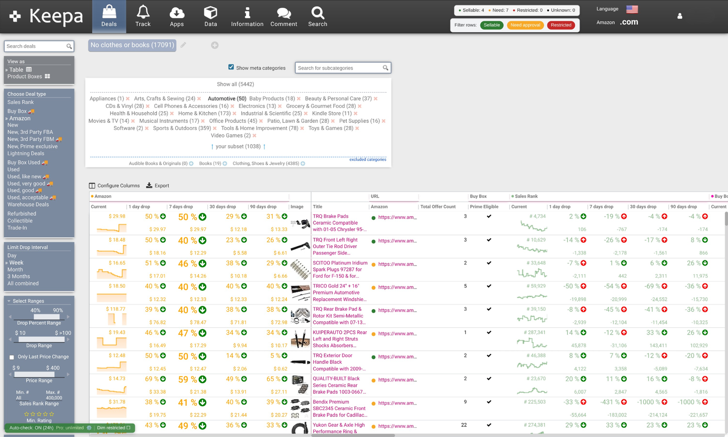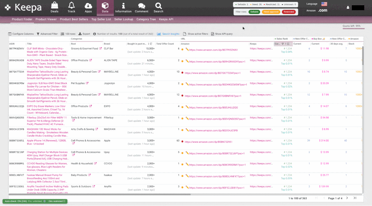 - • Advanced filtering to hide restricted ASINs and focus on real opportunities.