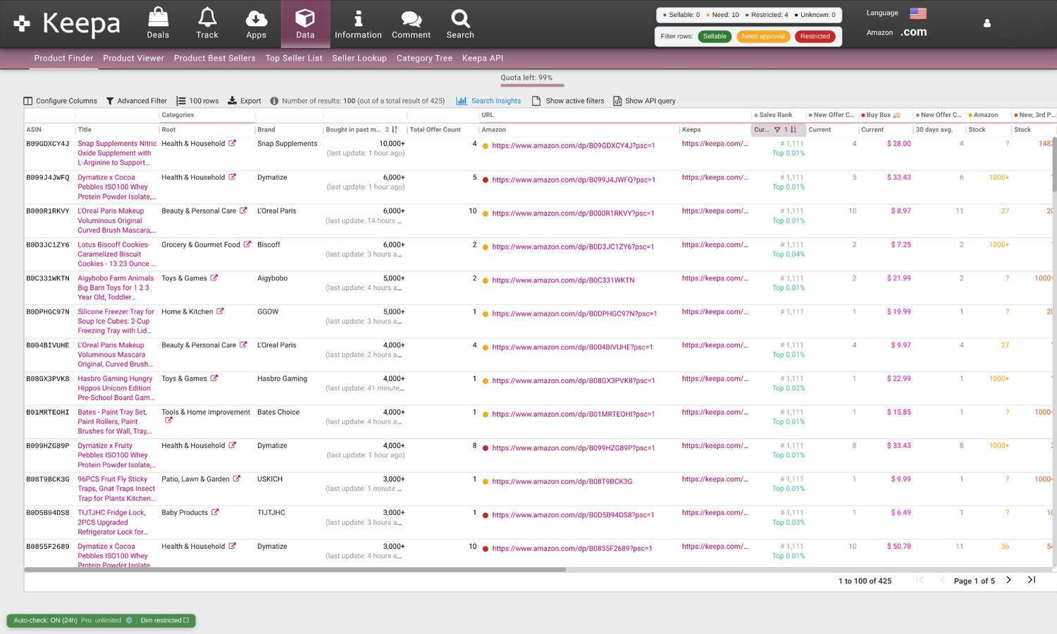 - Advanced filtering to instantly hide restricted ASINs.